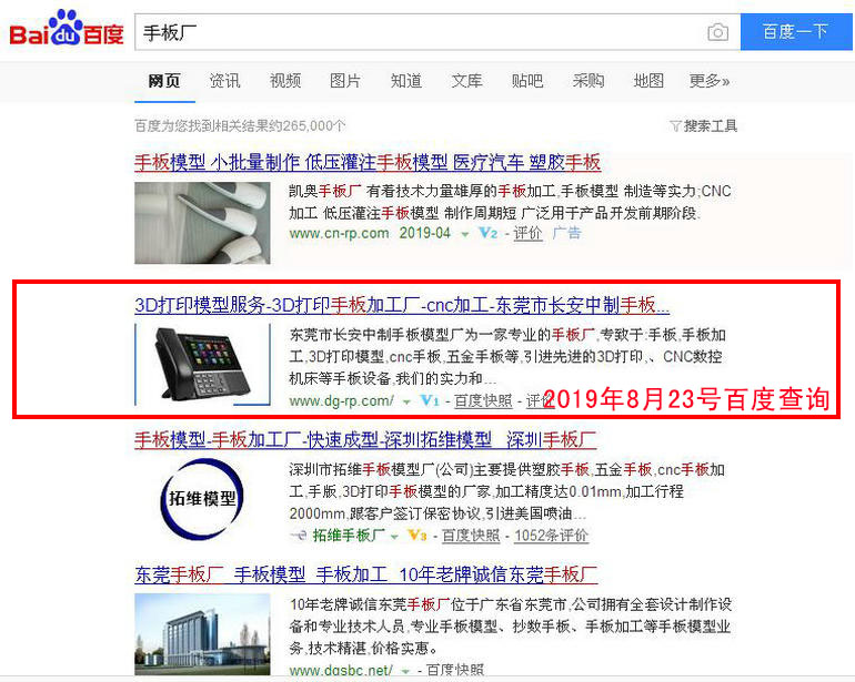手板廠 百度(PC)自然排名第1名,360搜索、搜狗、手機搜索等均也有比較好的排名...